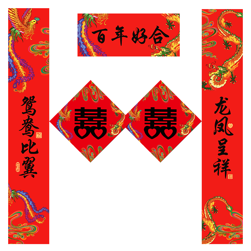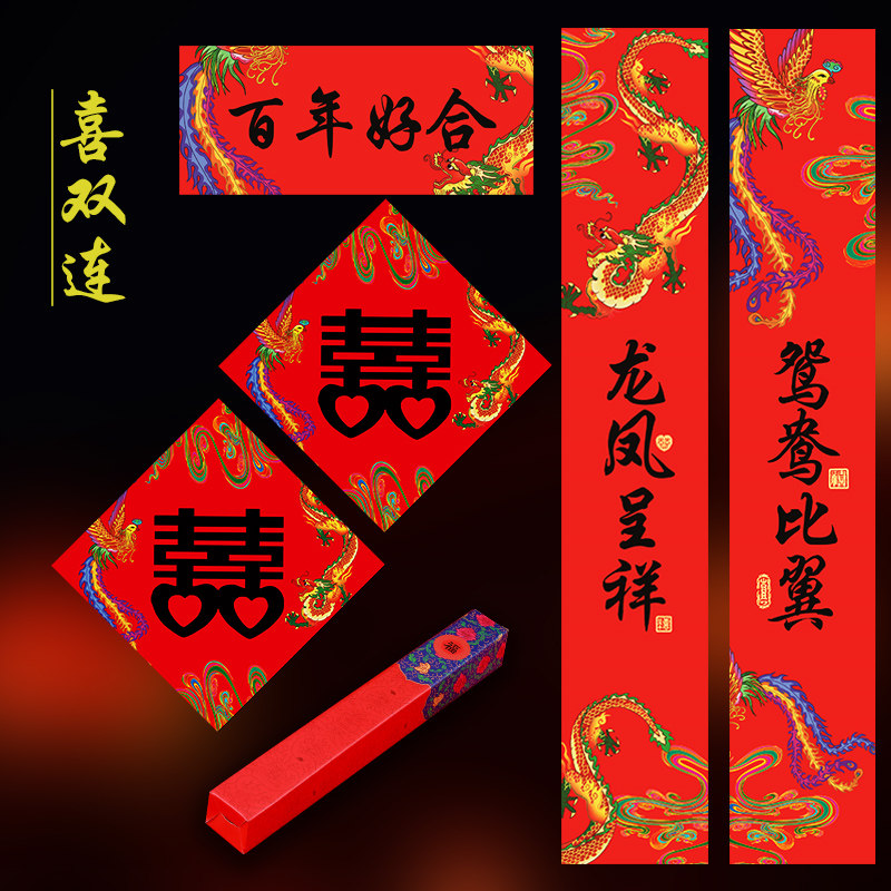 Wedding couplet Wedding door Xi Lian Man woman married rural wedding room newlywed happy word door sticker custom gift box