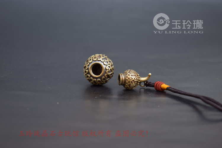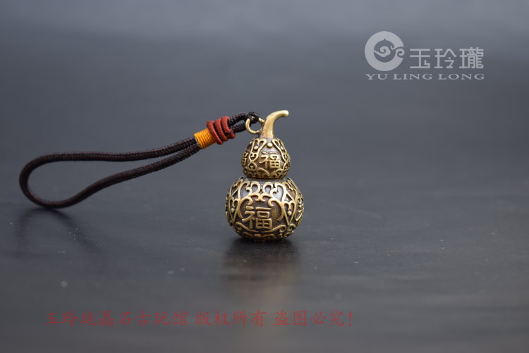 Brass gourd small pendant antique bronze micro-carving storage gourd key chain bag hanging antique bronze carving