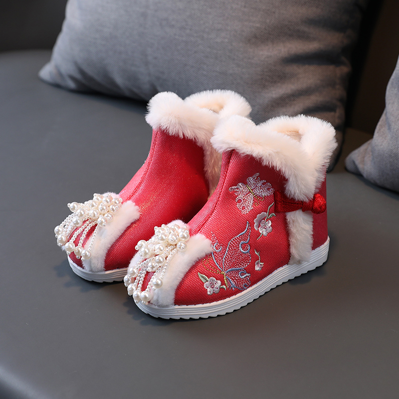 Hanfu shoes children girls embroidered shoes ancient costume handmade ethnic style shoes Chinese style cotton boots old Beijing cloth shoes