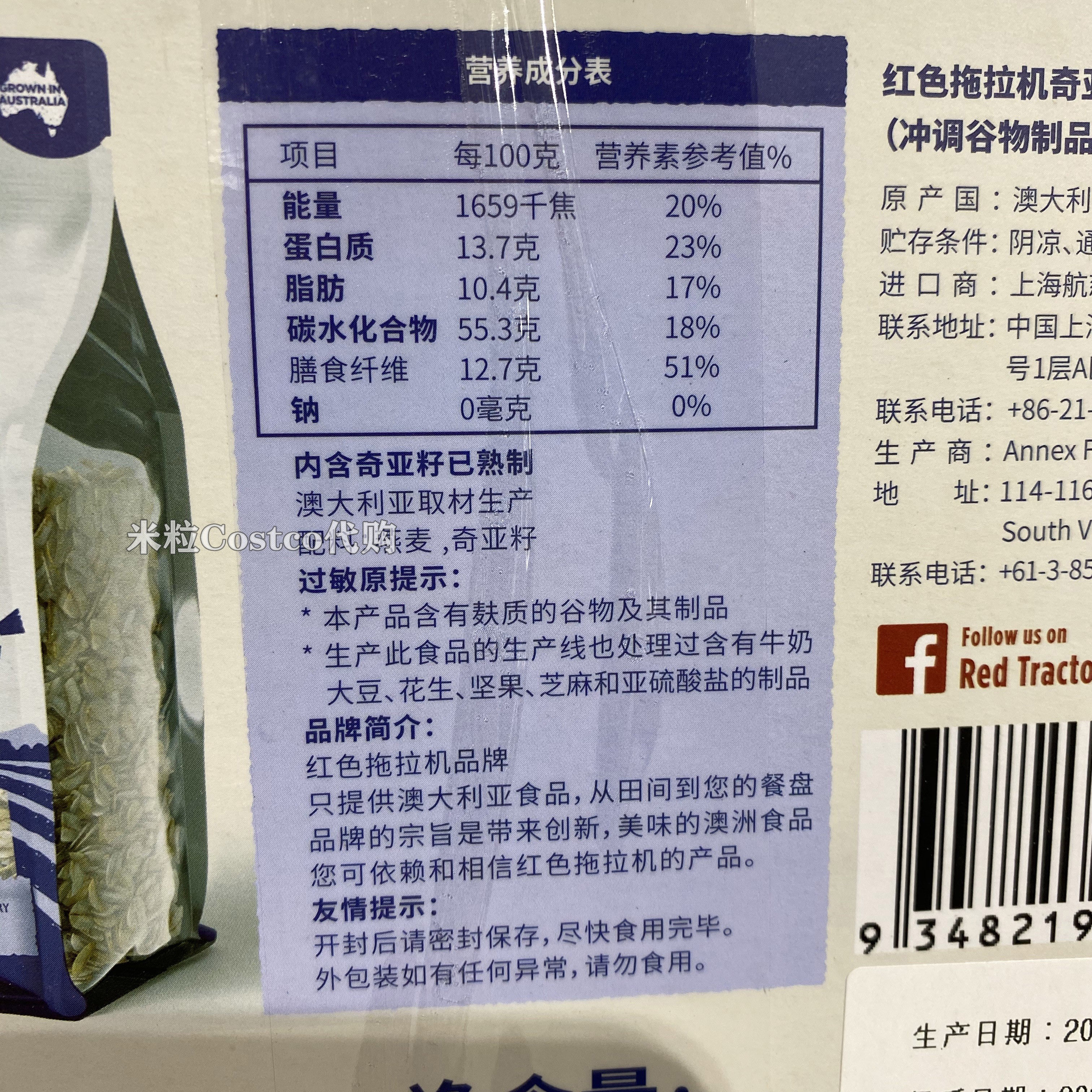 Shanghai Costco purchases Australian Red Tractor OMEG3 Chia Seed Oak Oats 1 5kg Dietary Fiber Instant