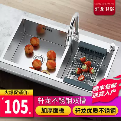 Washing basin double sink thickened table basin embedded manual 304 stainless steel sink kitchen sink size
