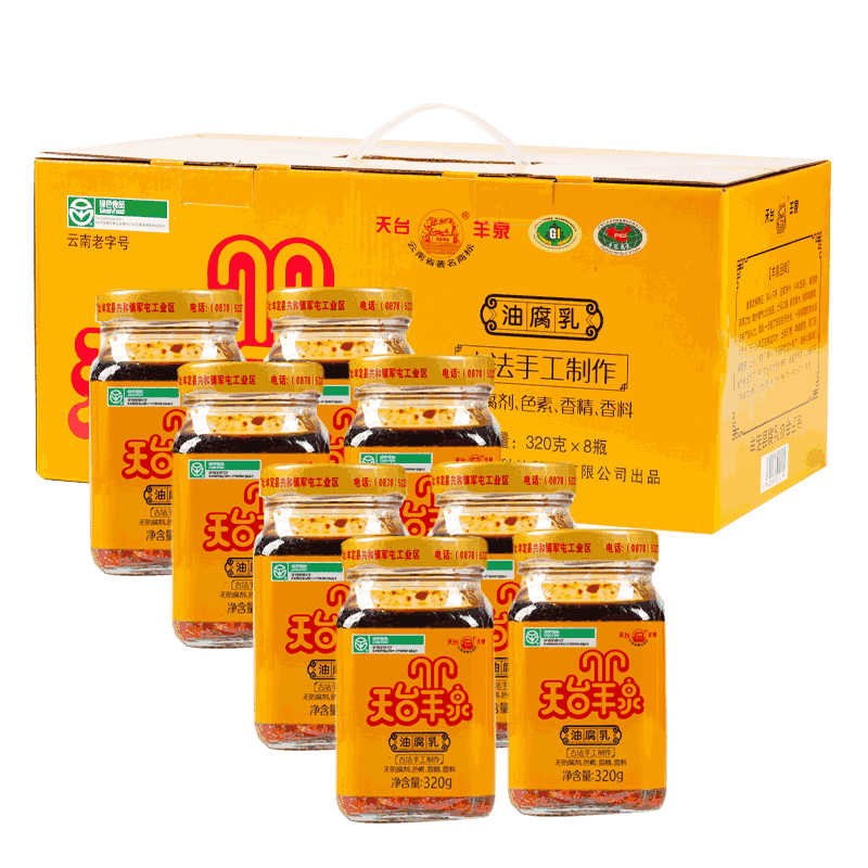 Roof Goat Spring Yunnan Special Oil Curd 320g * 8 bottled savory and spicy with salty and stinky curd cream