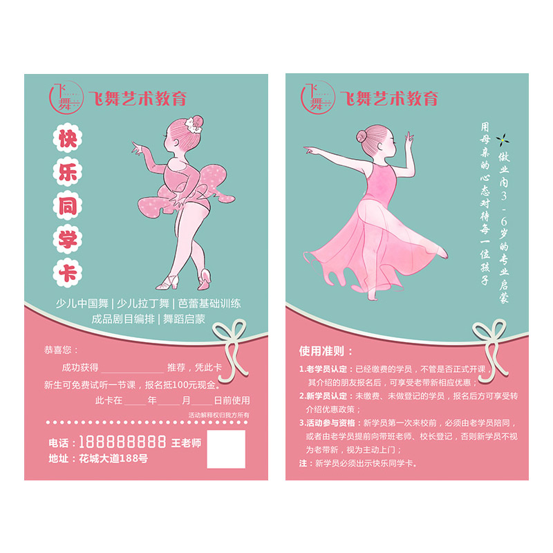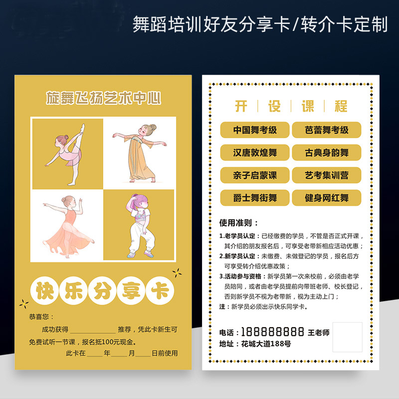 Latin dance trial class invitation card custom school enrollment old with new transfer introduction card ballet dance training experience card