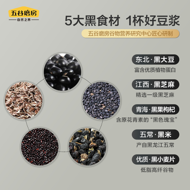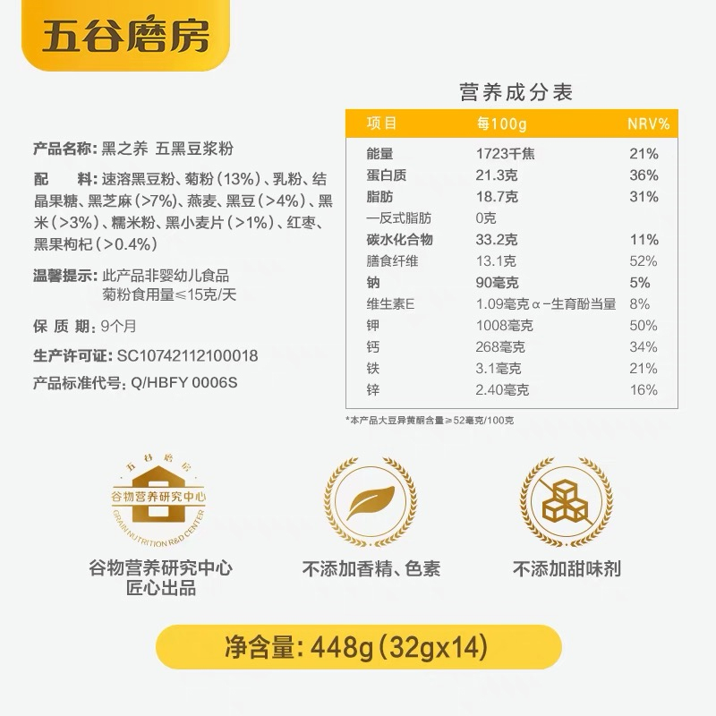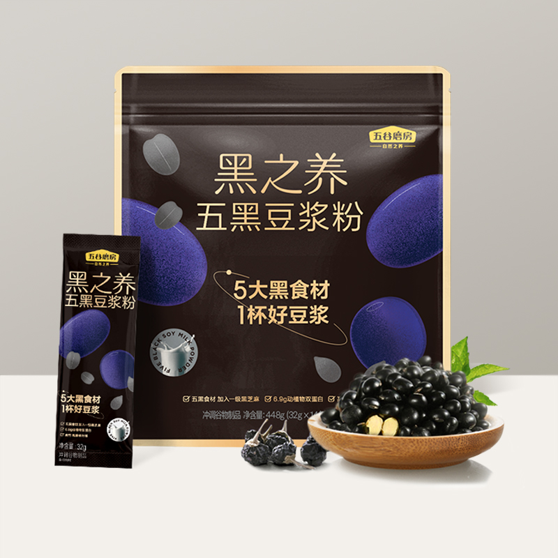 (Pat 1 Fat 3) Five Valley Grinding Room Five Black Soy Milk Powder Breakfast Non-Genetically Modified Small Bagged Flushed Beverage Soy Milk