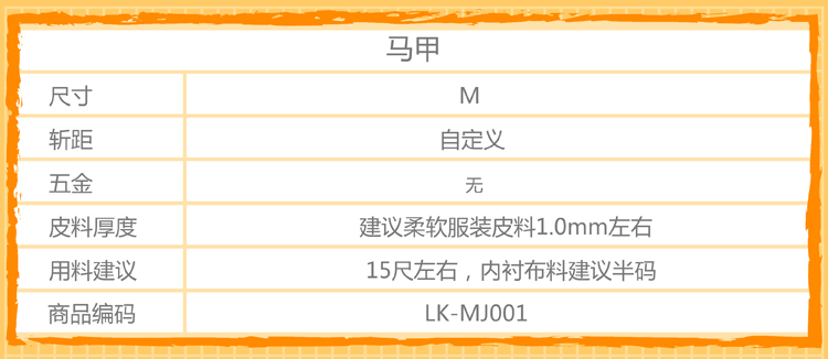 LK-MJ001 Handmade Clothing Leather DIY Drawing Edition Custom Precision Cutting Cow Card Vest