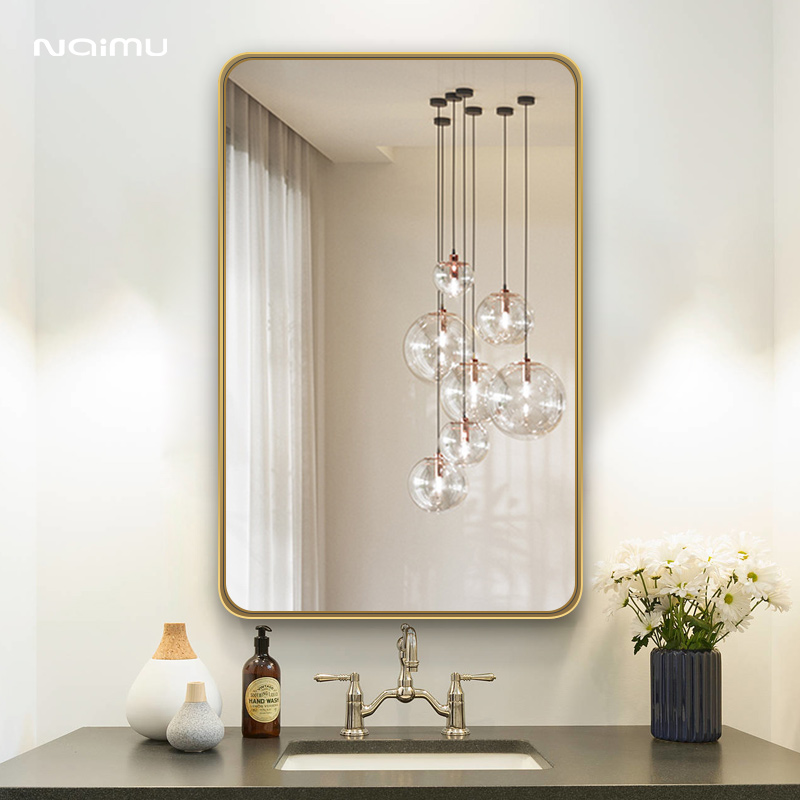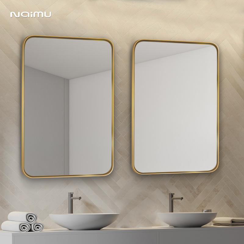 Golden border round corner dressing room toilet mirror wall hanging Nordic simple bathroom mirror bathroom toilet makeup mirror