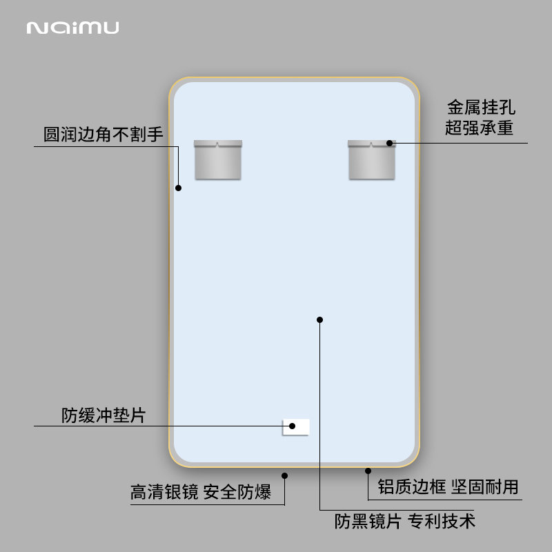 Wide 500 * High 800 (vertical) HD explosion-proof silver mirror light luxury gold frame width 600 * High 800 (vertical) explosion-proof silver mirror light luxury gold frame width 500 * height 10