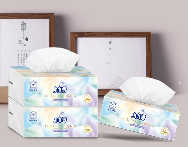 Jiujiuxiang log paddle paper 4 layers thick flexible small size facial tissue paper home affordable full box 27 packs of mass selling