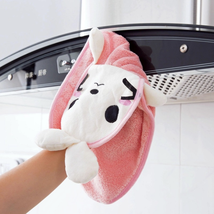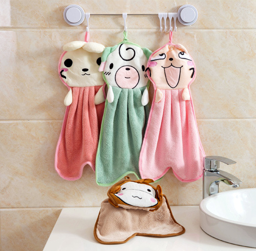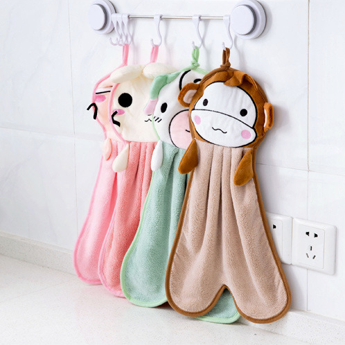 Cartoon Kitchen Makeup Room Children Coral Fleece hand towels Absorbent Hanging Small Towel Dishcloth cute Korea