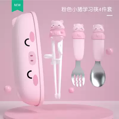 Chicken vitality orange learning chopsticks (separate) chicken coral powder learning chopsticks (separate) Piggy pink learning chopsticks (separate) Piggy pink learning chopsticks box piggy pink learning chopsticks spoon Fork