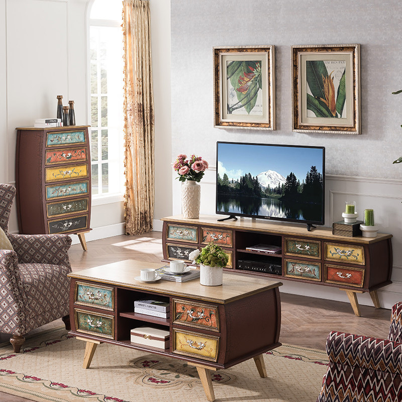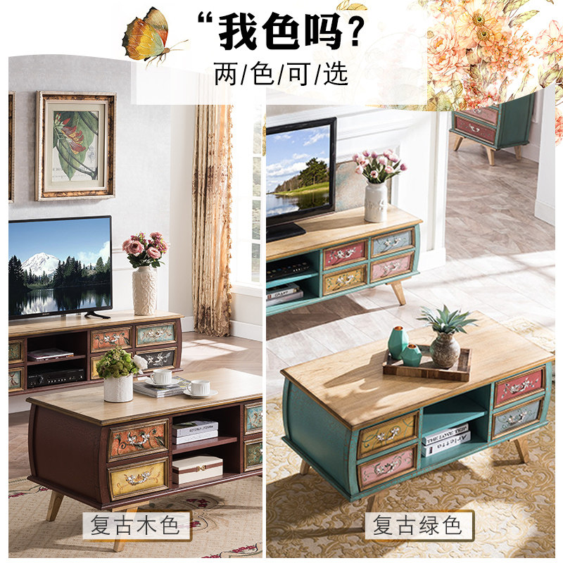 Retro wood vintage green TV cabinet combination of tea several