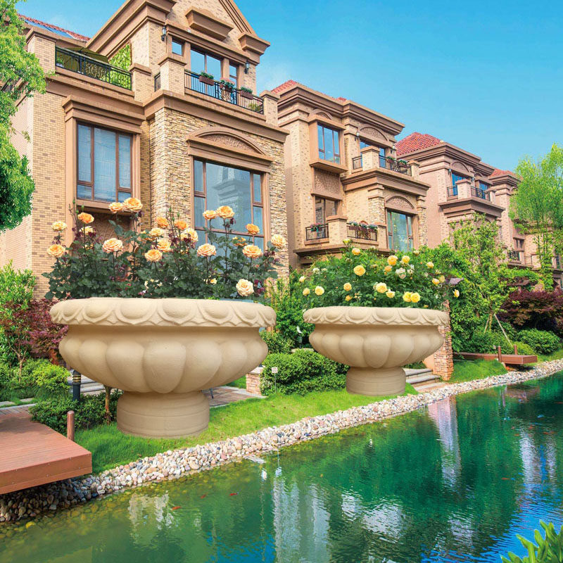 European flower basin outdoor flower pot courtyard villa sandstone glass steel cement graven cement outdoor large flower forum