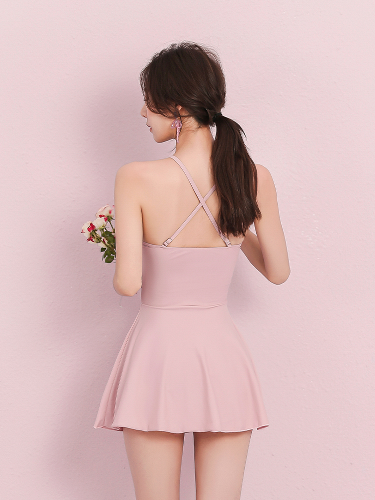 Swimsuit women's one-piece conservative skirt style hot spring small chest gathered Korean small fragrant style to cover belly and show thin students cute Japanese