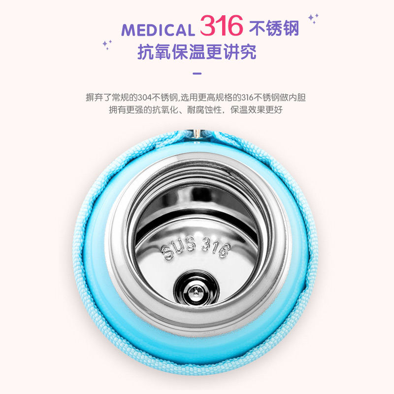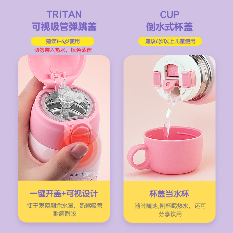 Love Shida 316 Stainless Steel Children Insulation Cup With Straw Dual-use Kindergarten Pupil Cartoon Drink Water Glass