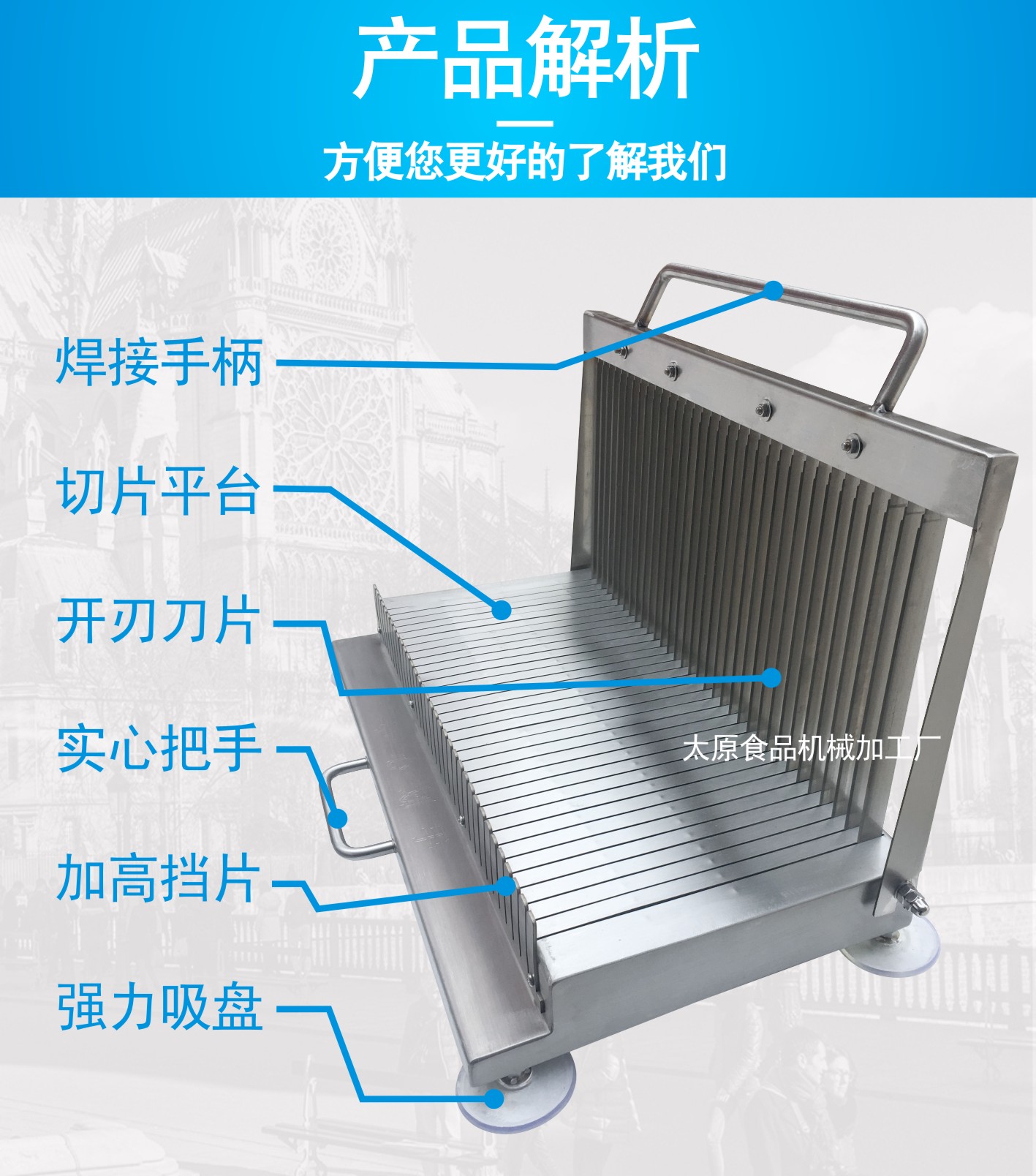 Cool skin machine cutting blade thickened stainless steel hand-pressed small tofu duck blood luncheon meat cucumber ham sausage processing