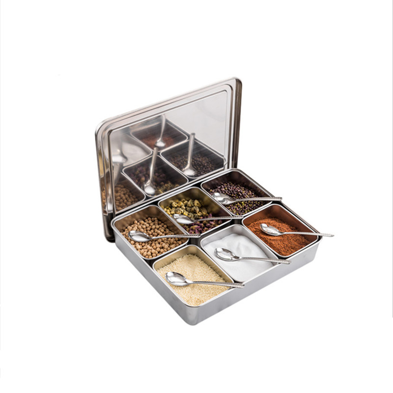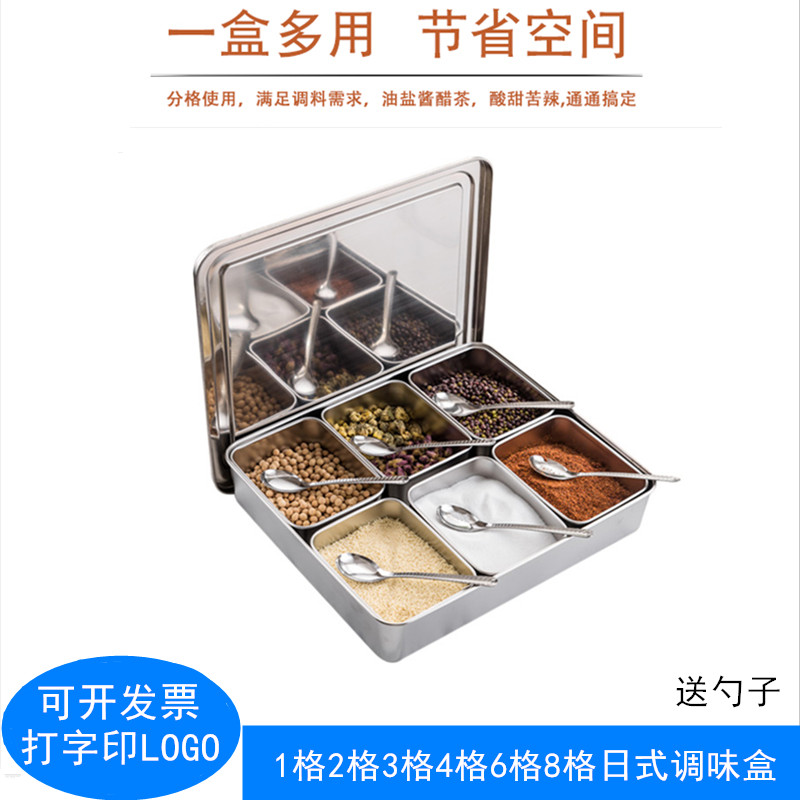 304 stainless steel Japanese-style six-eight-flavor seasoning box kitchen back kitchen six-eight grid seasoning box with cover sample box set