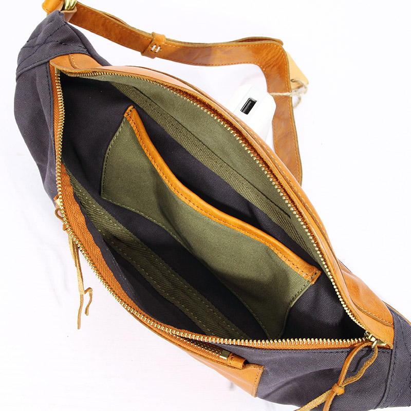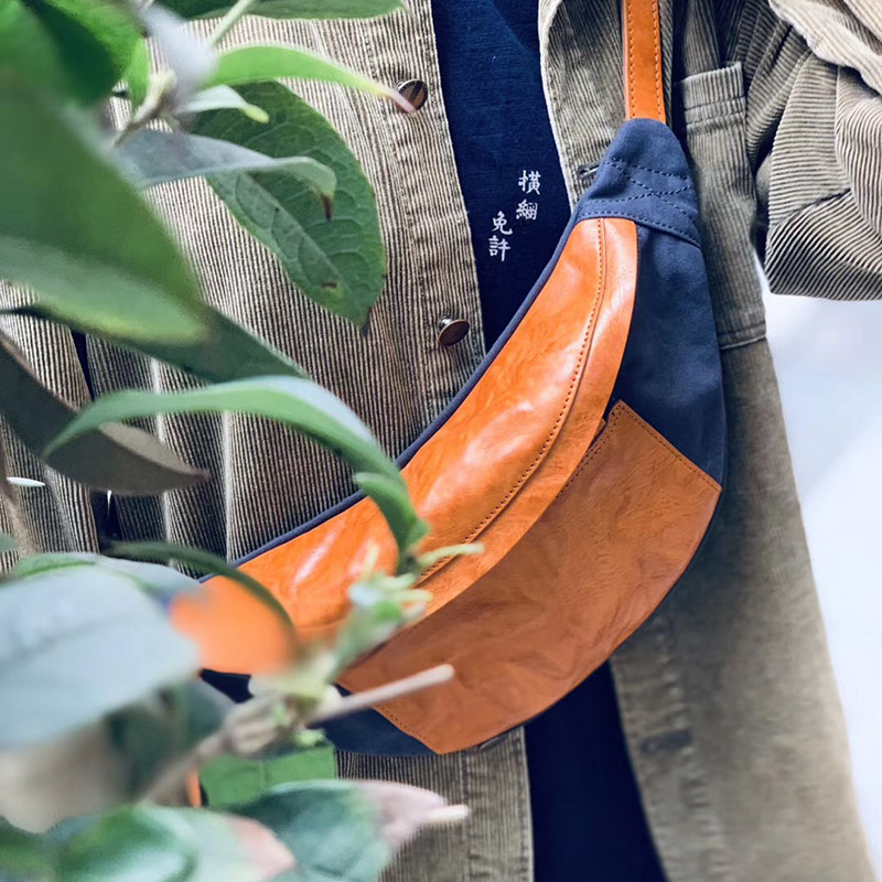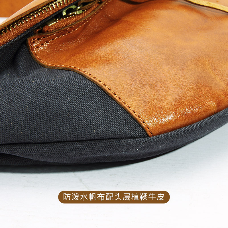 Canvas with cowhide chest bag men's messenger bag street casual backpack tide brand men's bag one shoulder small shoulder bag waist bag