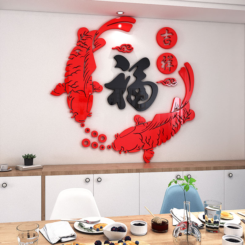 Enter the door New Year Blessing word self-adhesive wall sticker Living room entrance TV background wall decoration 3D Three-dimensional wall sticker