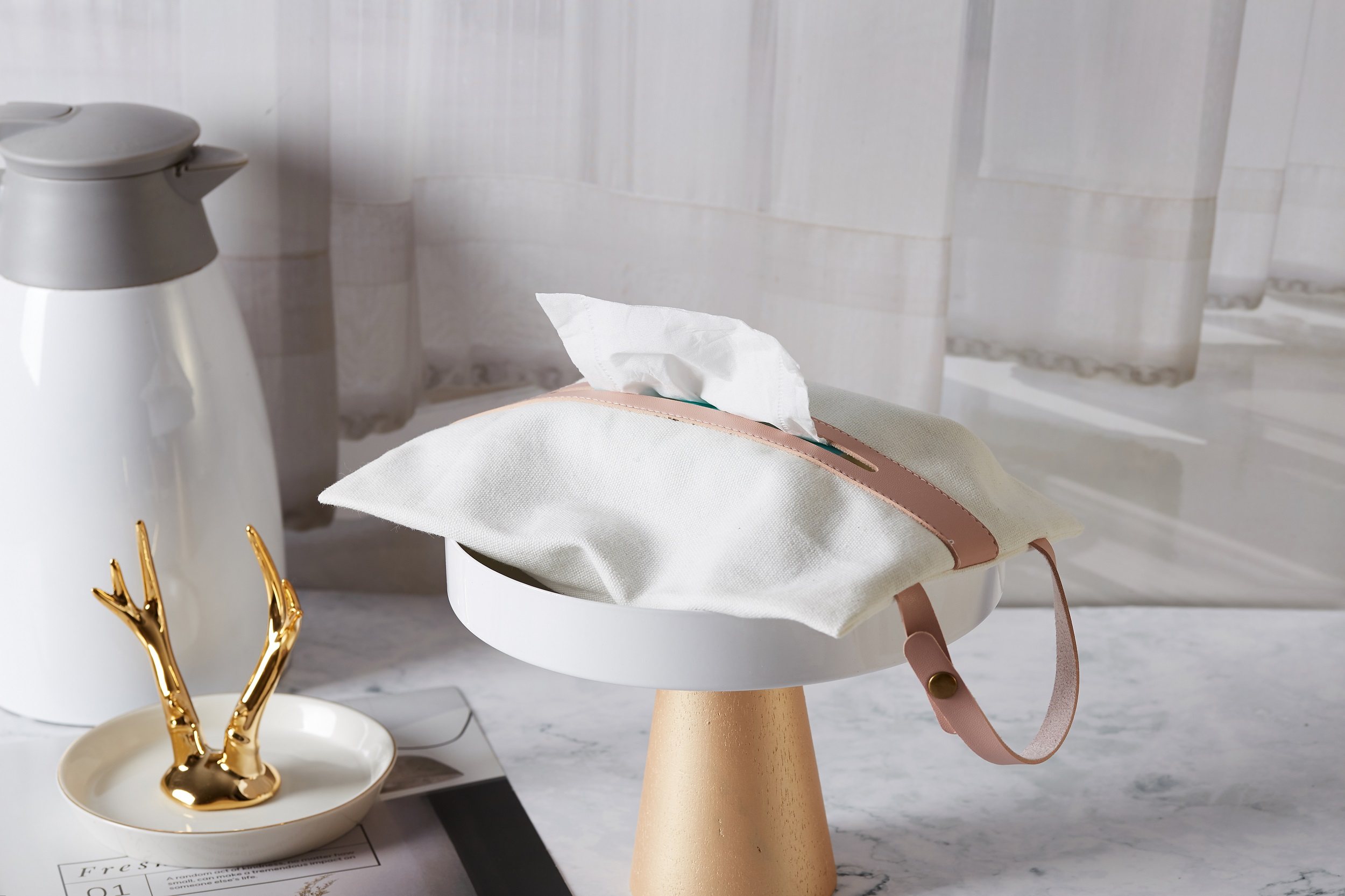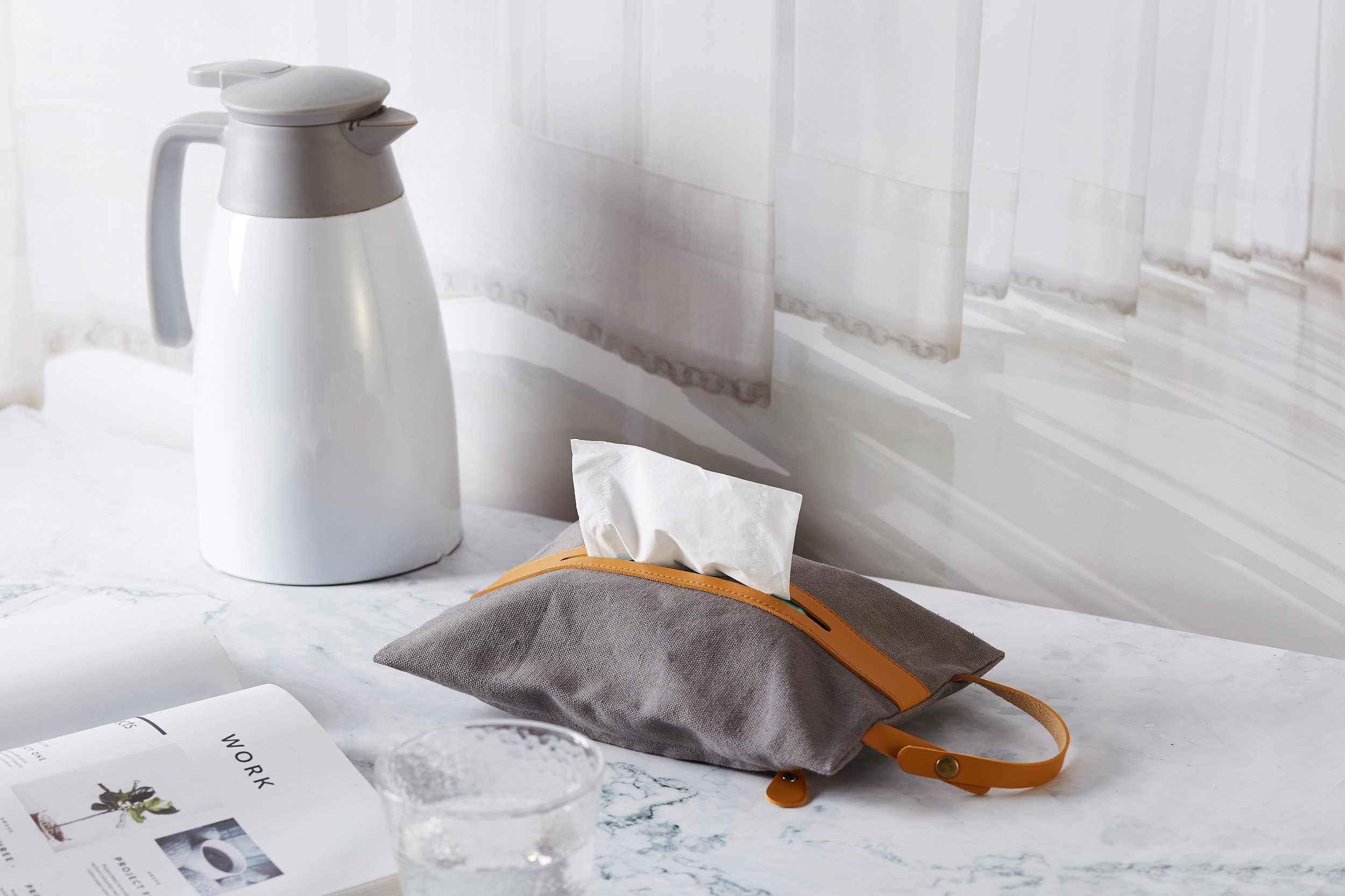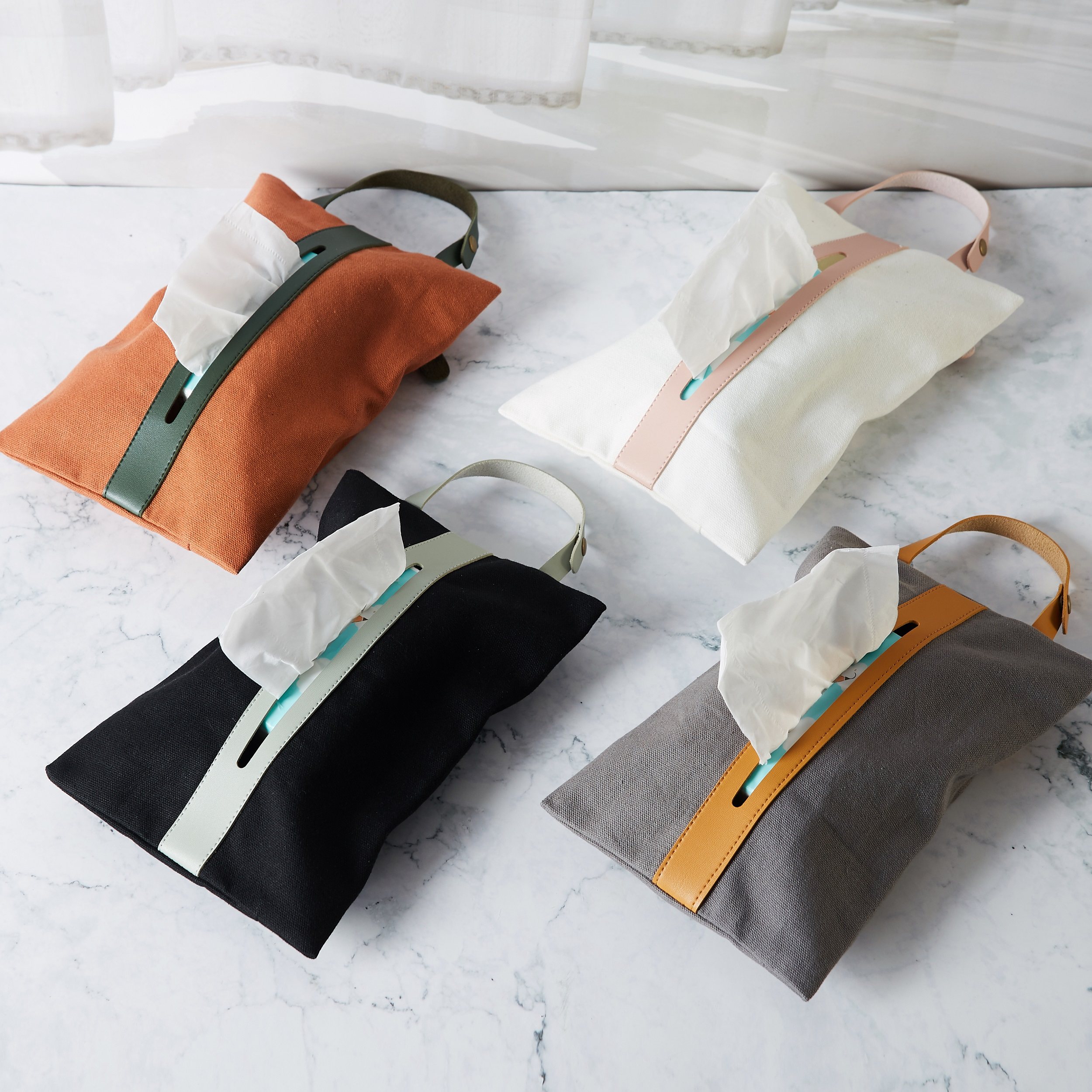 Japanese fabric canvas leather lace-up creative tissue box car on-board draw bag foldable hanging draw sleeve
