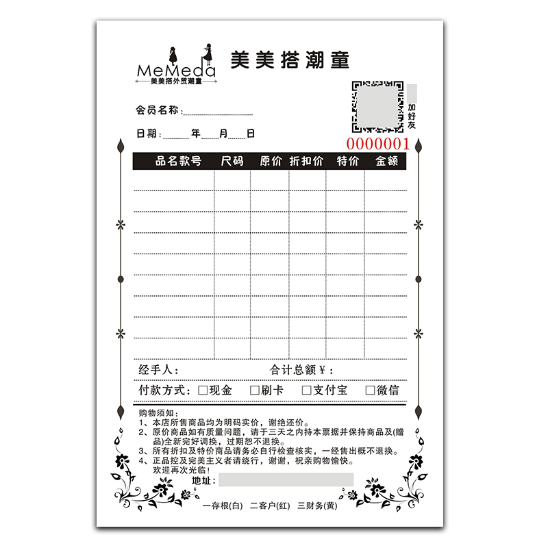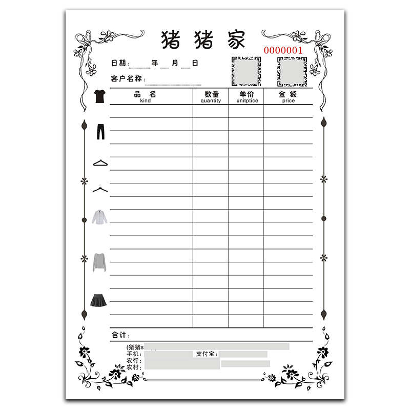Clothershop sales small ticket sales list receipt receipt of 2LinksShoe shop ordering purchase 34Co-sales bill bookkeeping invoice invoice opening order