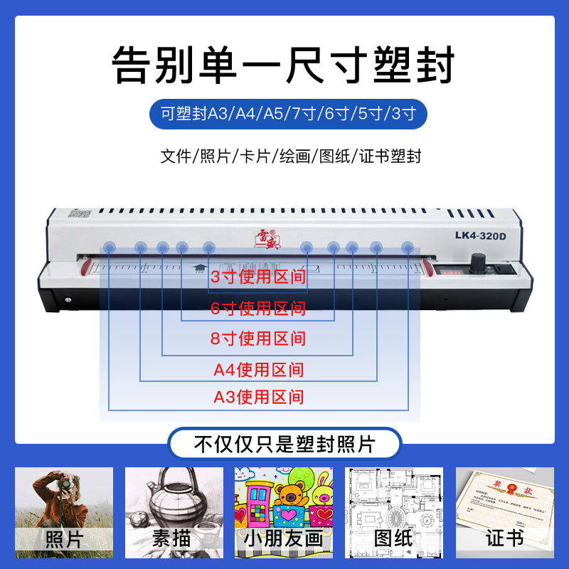 A3 energy saving plastic sealing machine Leisheng LK4-320D photo A4 photo overmolding machine A4 overmolding machine Home office laminating machine won two design patents cold mounting hot mounting laminating machine