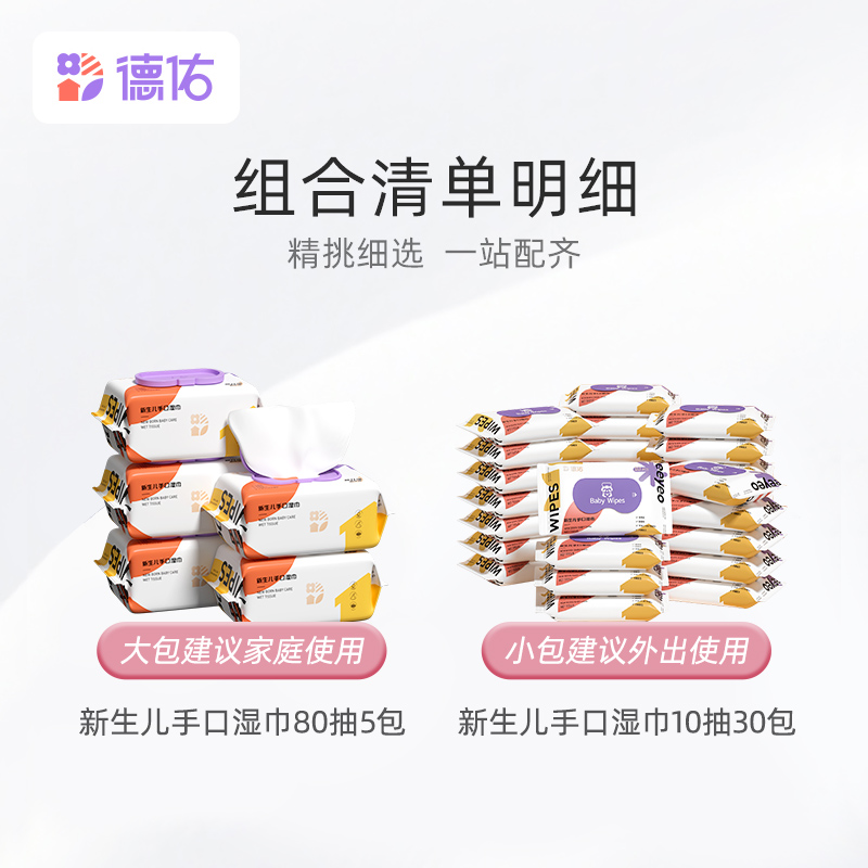 Deyou baby hand and mouth wet wipes family affordable pack 80 pumps 5 packs portable pack 10 packs 30 packs