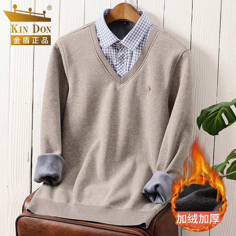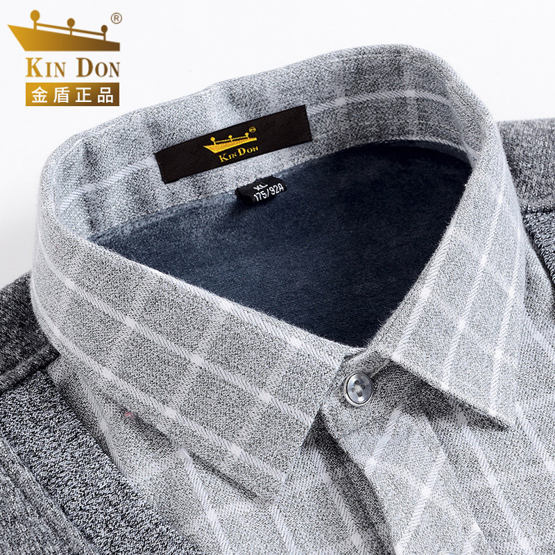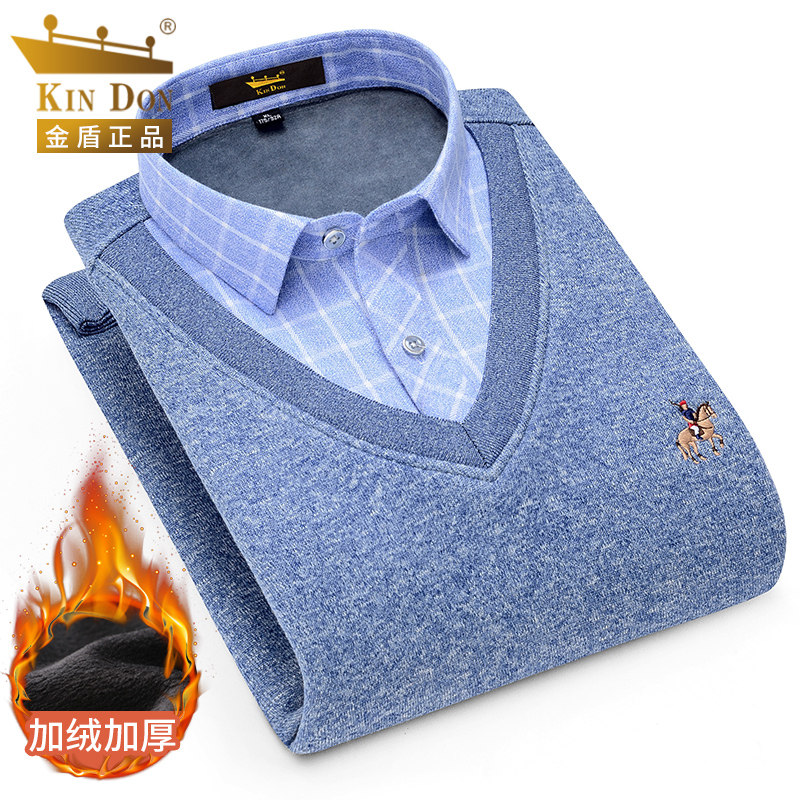 KIN DON DON GOLD SHIELD WARM SHIRT MEN'S FAKE TWO MIDDLE-AGED DADS WEASELWEAR WINTER THICKENED SHIRTS ADD SUEDE