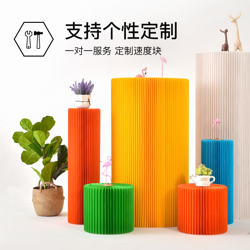 Paper exquisite creative window display rack Nakajima display table exhibition exhibition Folding paper cylindrical shelf round booth