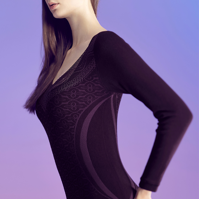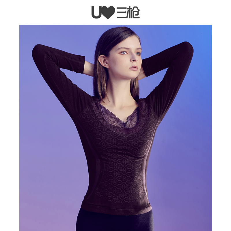 Three-gun underwear women's bottoming shirt autumn and winter body slimming composite warm velvet lace V-neck warm bottoming ladies top