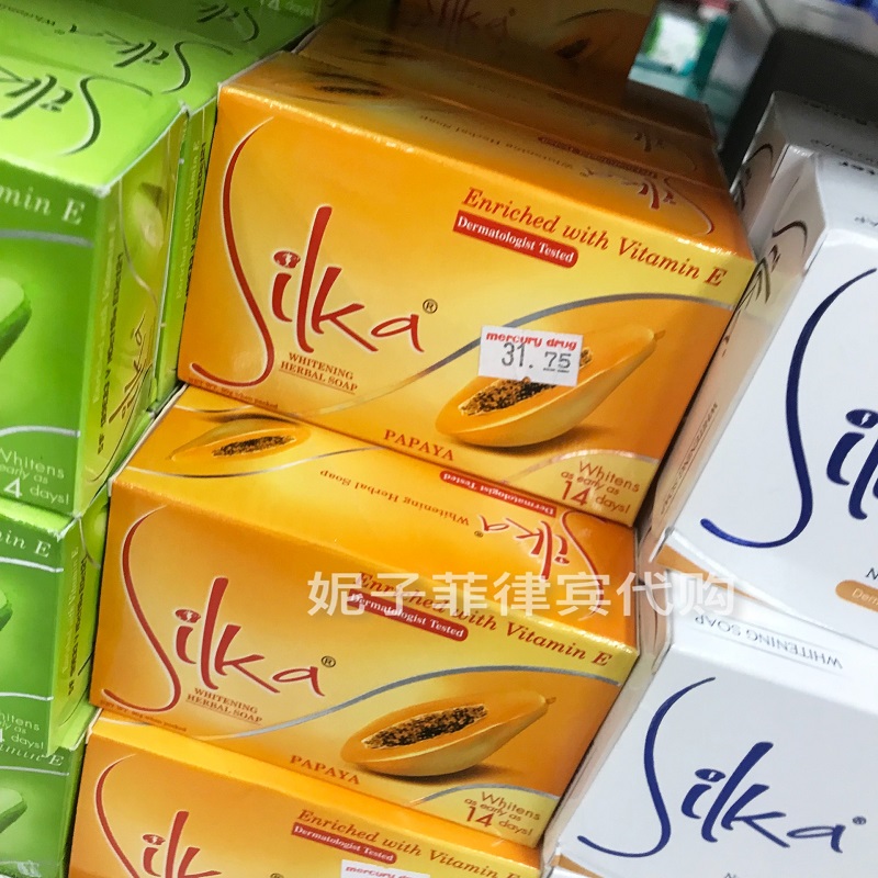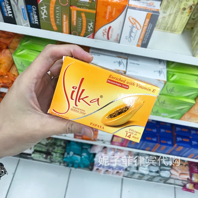 Philippines Silka Yellow Papaya Soap Beauty Skin Care Body Soap Whitening Moisturizing with Vitamin E135g90g