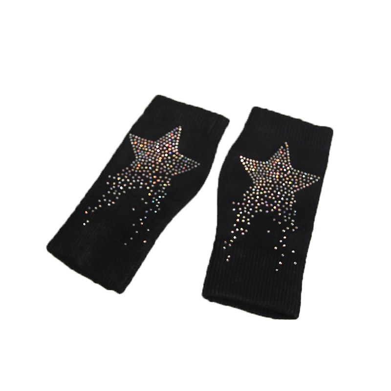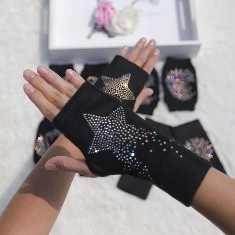 Wool Dew Finger Gloves Lady Autumn Winter Han Edition Cartoon Cute Knit Wool Cord Thick warm with drill half finger glove