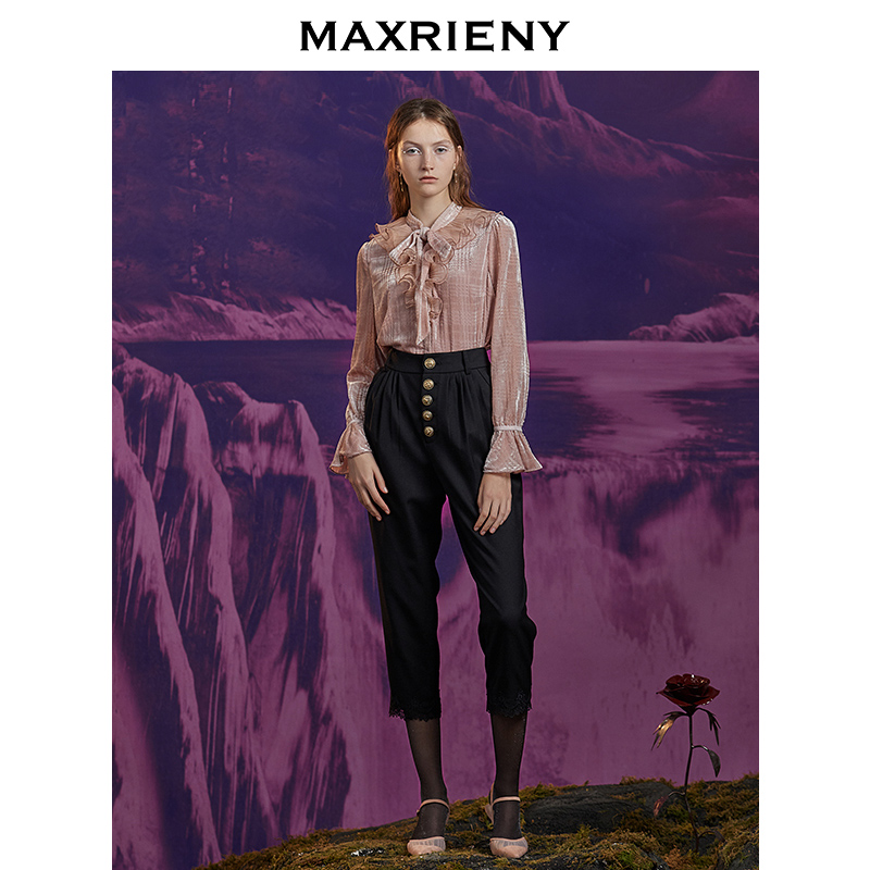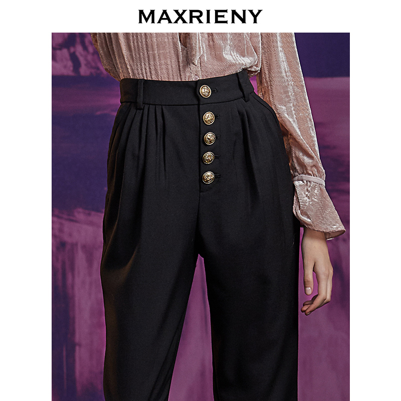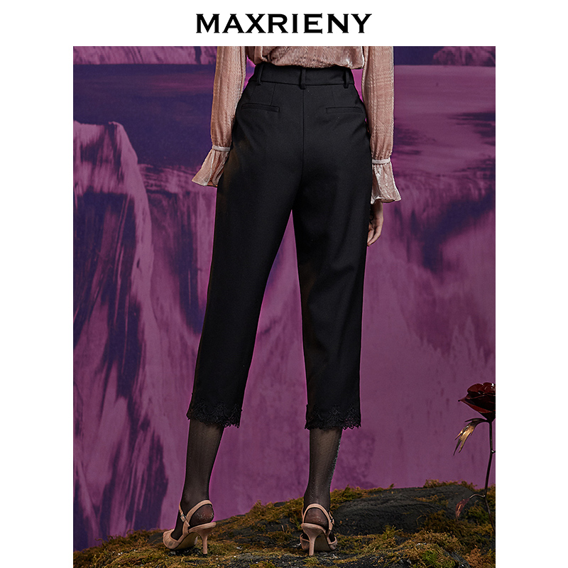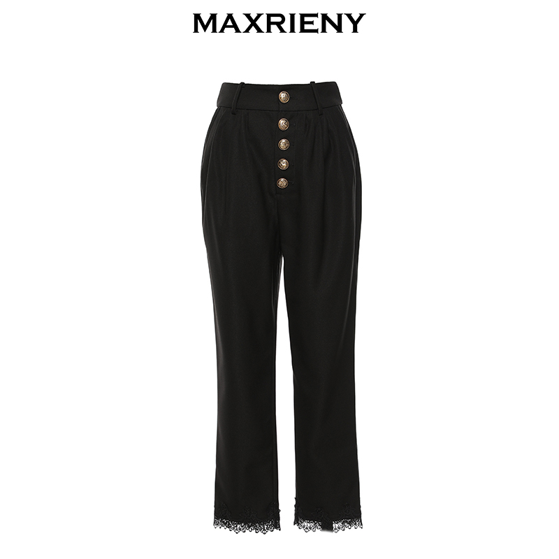 MAXRIENY new retro classic black lace trousers women's slim breasted pants
