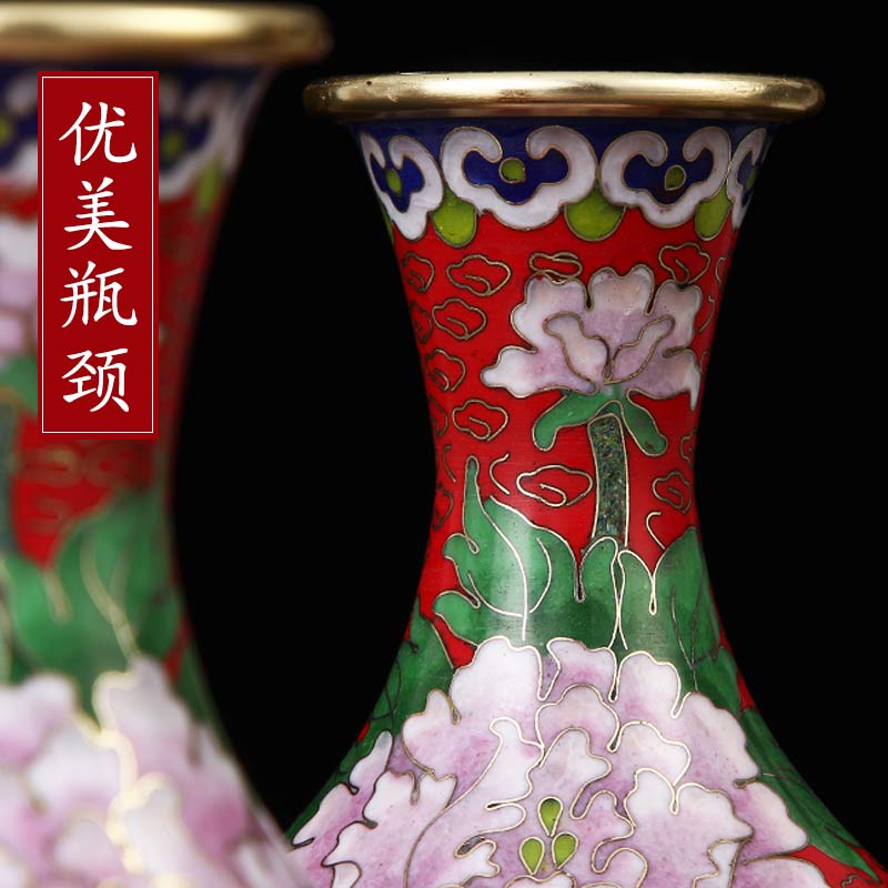 Cheng teacher Jingtai Blue jade pot Spring vase Chinese style decorative pendulum decorated with bronze tire pinch of enamel folk handicrafts