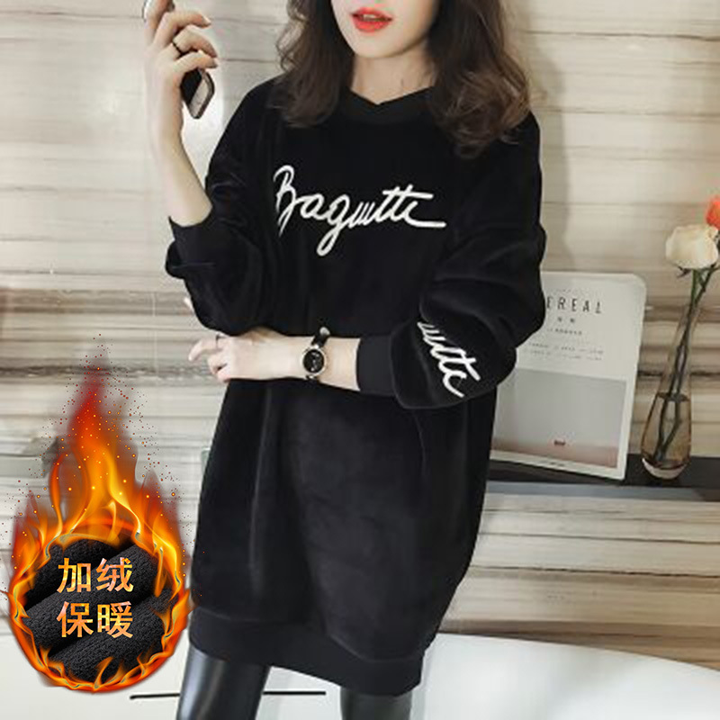 Pregnant woman sweater velvet thickened long version of 2021 models hot mom spring and autumn top women loose outside wear base shirt
