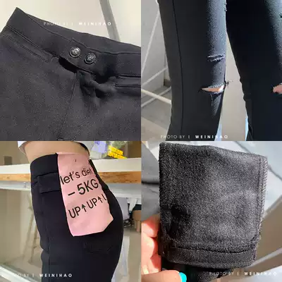 Plus velvet electric hip magic pants classic magic pants micro velvet magic pants New plus velvet magic pants black hole magic pants dark blue hole jeans light blue denim pants