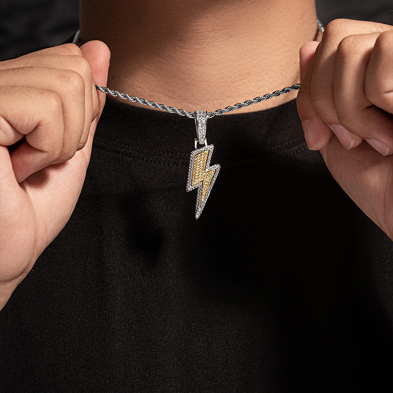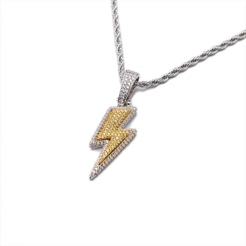 Lightning full diamond pendant gold (with chain) Lightning full diamond pendant silver (with chain)