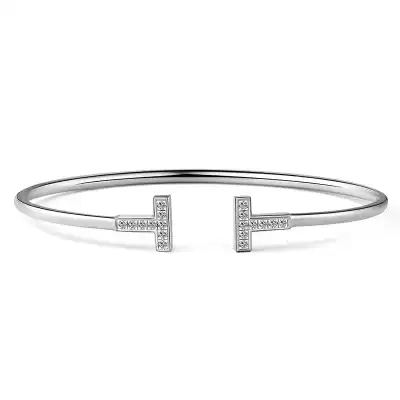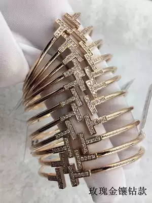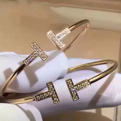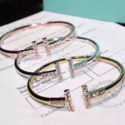 18K platinum double T opening diamond bracelet female AU750 rose gold handwear Net Red Star same temperament bracelet