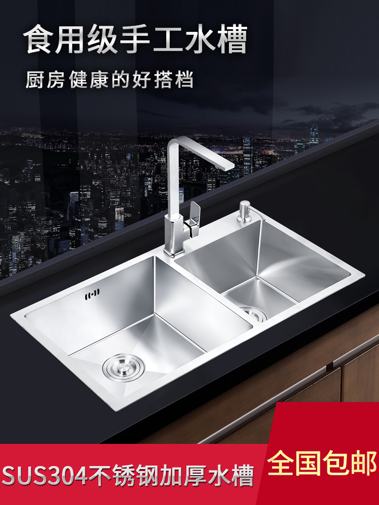 Kitchen with knife holder manual double sink stainless steel sink package thickened 304 table and down washing basin dish washing pool
