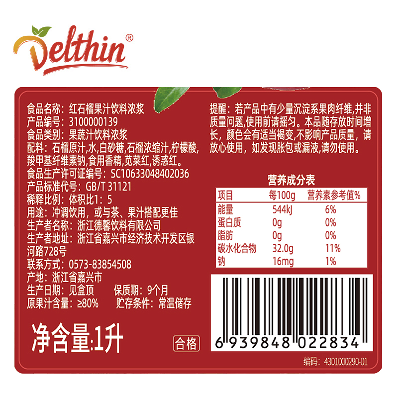 Dexinzhen chooses rare fruit fresh pomegranate juice beverage 1L milk tea shop special brewing beverage red pomegranate juice concentrate juice raw materials