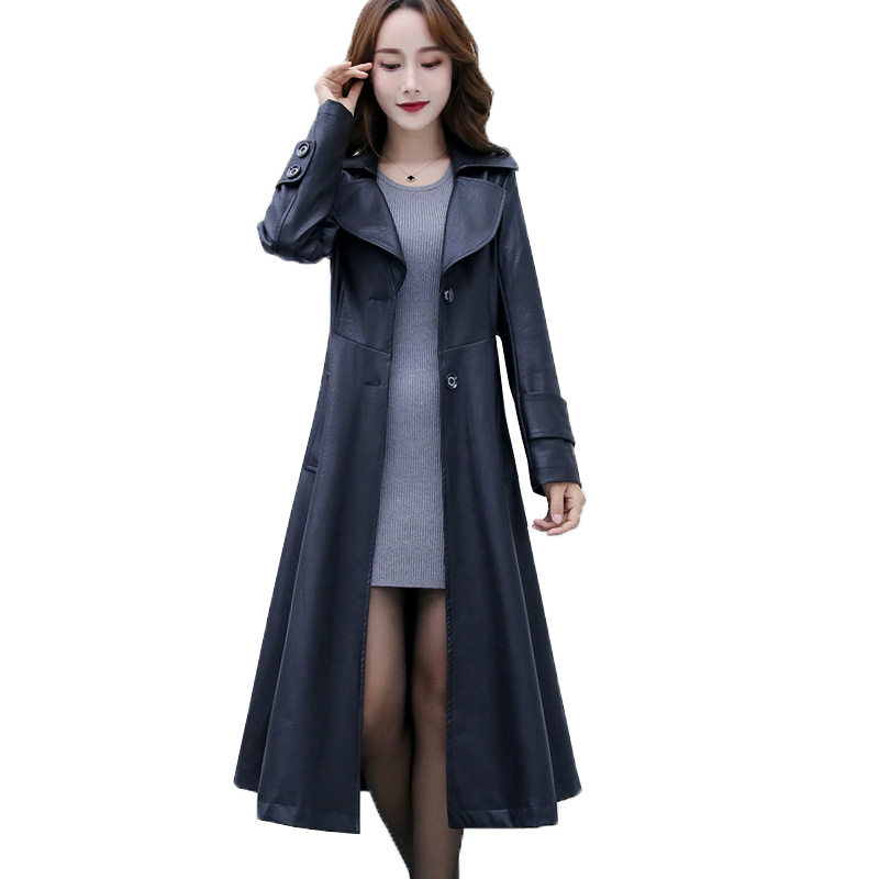 Black leather windshirt black double-row button black-collar (long version) black-tip (Chinese)