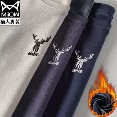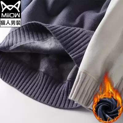 Cat man 2021 Winter new sweater men plus velvet padded Korean trend sweater winter boys warm clothes