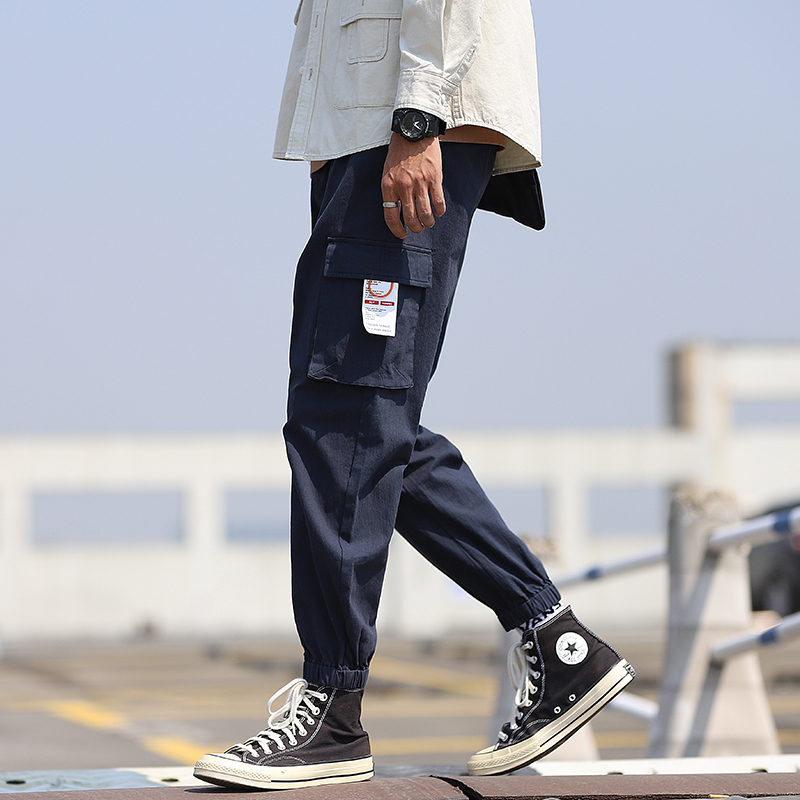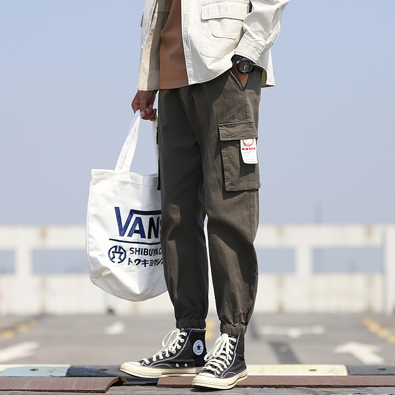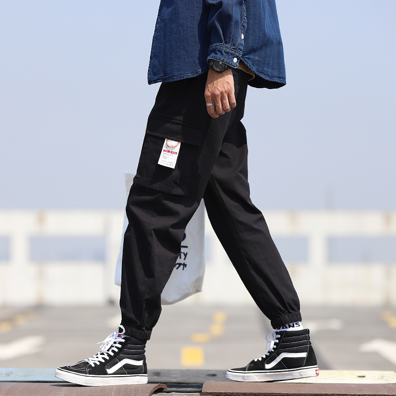 Overalls men's fashion brand loose drawstring pants Korean version of the trend slim drawstring leg pants Autumn and winter handsome closed cigarette pipe pants