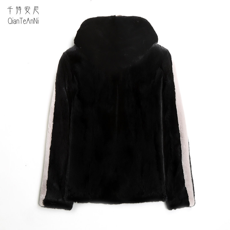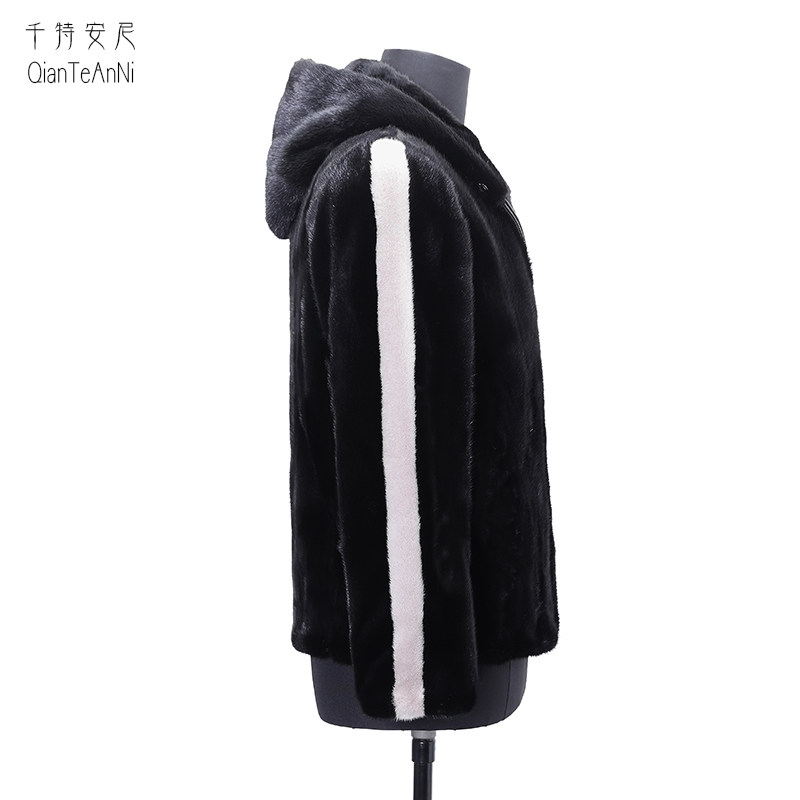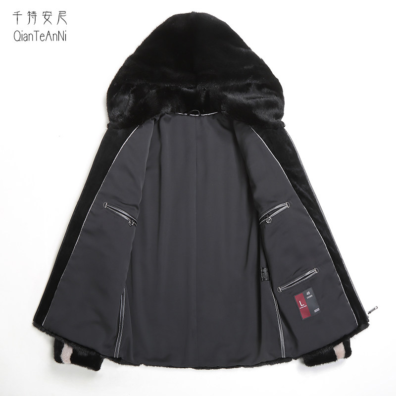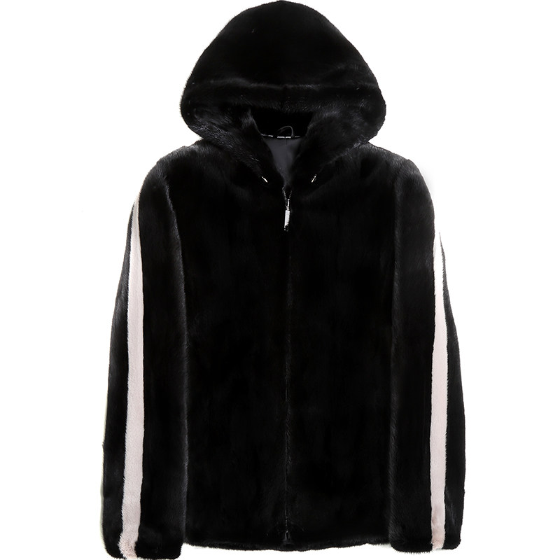 Black zipper with hooded short imported whole Marten leather coat male real mink velvet Haining fur coat