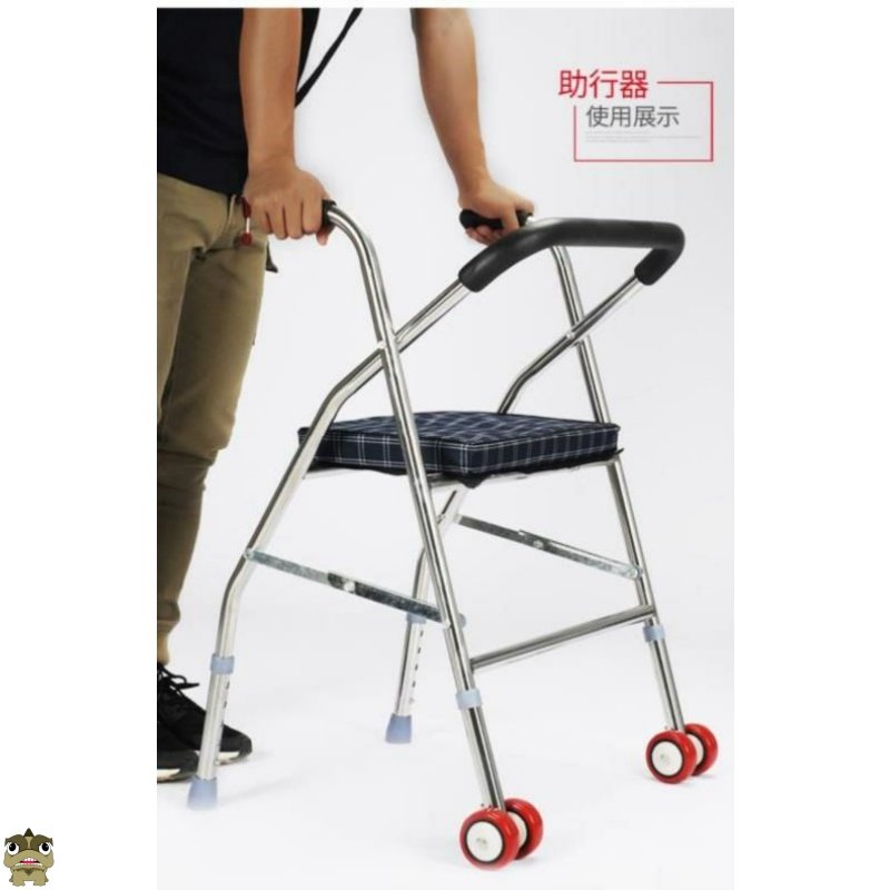 The elderly walker walking stainless steel seat walking learning walking device with a stool to help the elderly cart chair hand-assisted walking