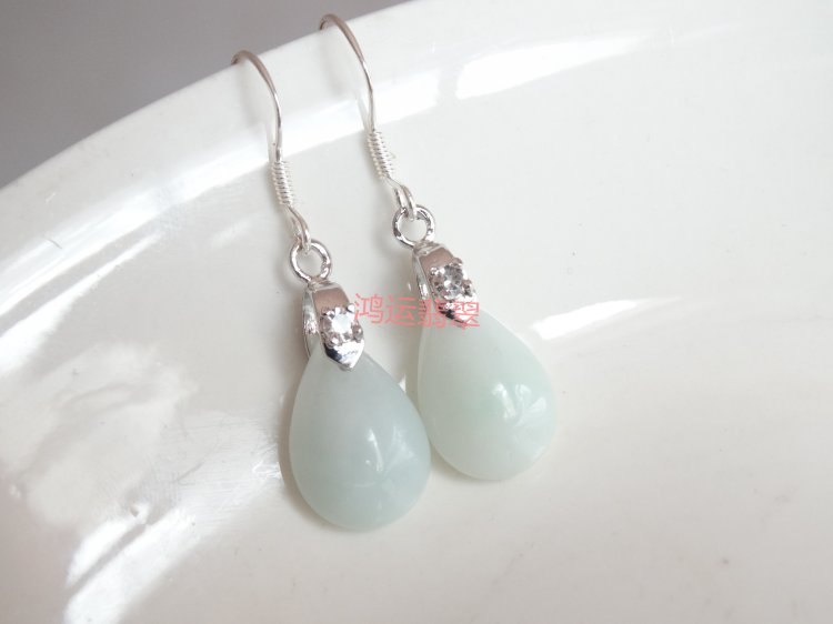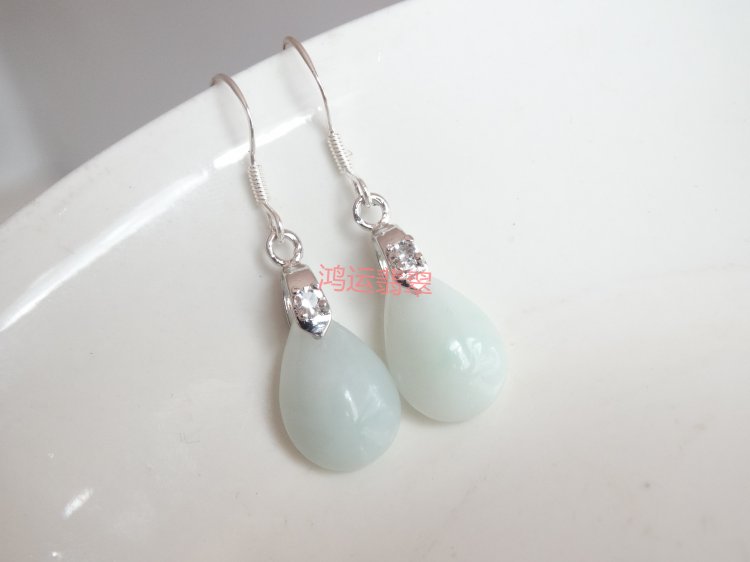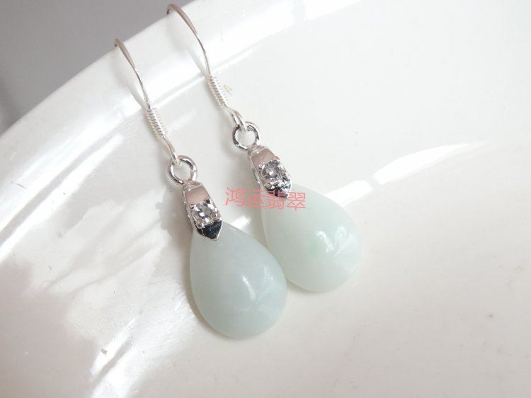 Natural Emerald A Cargo Eight-party Wealth Wang Career Drop Jade Earrings 925 Pure Silver Anti Allergy Jade Earring Special Price