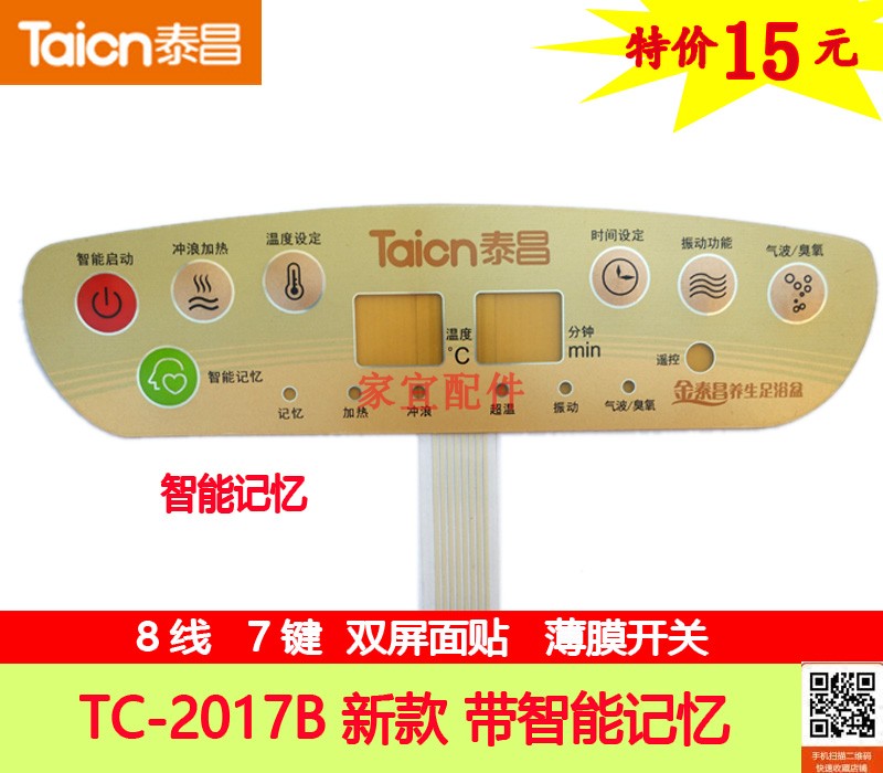 Taichang foot bath tub foot basin accessories TC-2017B surface sticker membrane switch new style with memory key 8 lines