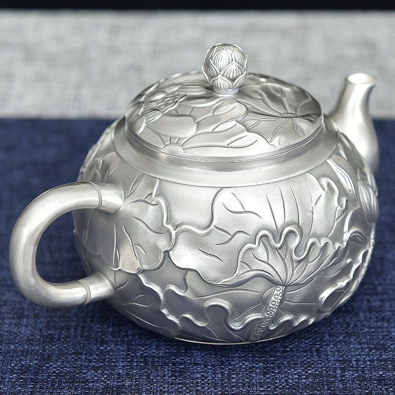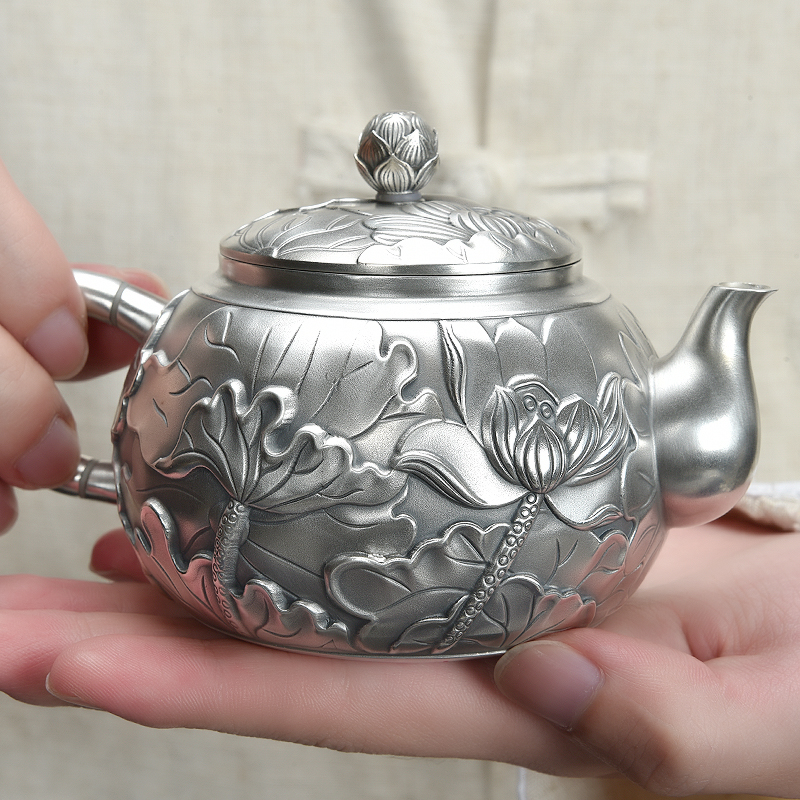 Tai'an Silver Industry Tea Pure Silver 999 Kung Fu Tea Furniture Set Group Pure Handmade Chinese Tea Road Home Pure Silver Teapot