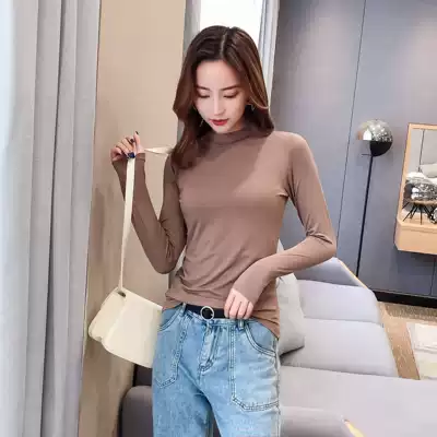 2019 Autumn Winter High Neck Half Turtleneck Modal Cotton Slight base shirt Women Long Sleeve T-Shirt Autumn Clothes