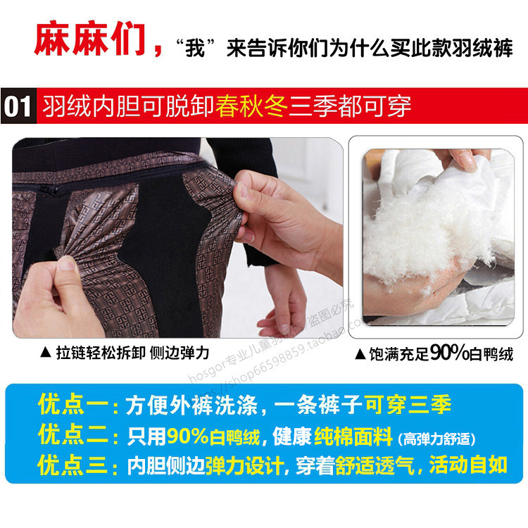 Children's down pants boys and girls thickened outer wear warm winter middle-aged children removable white duck down liner