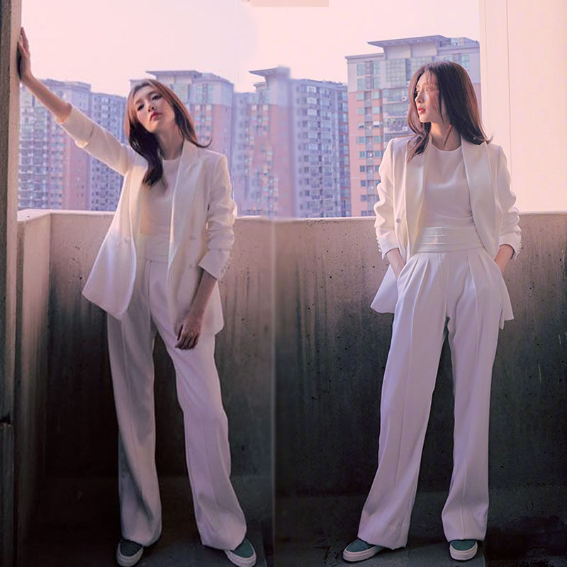 Star of the same Spring and Autumn Britannica stylish suit of horse-wide legged pants three pieces of female Han Edition professional suit suit
